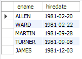 select ename, hiredate from employee